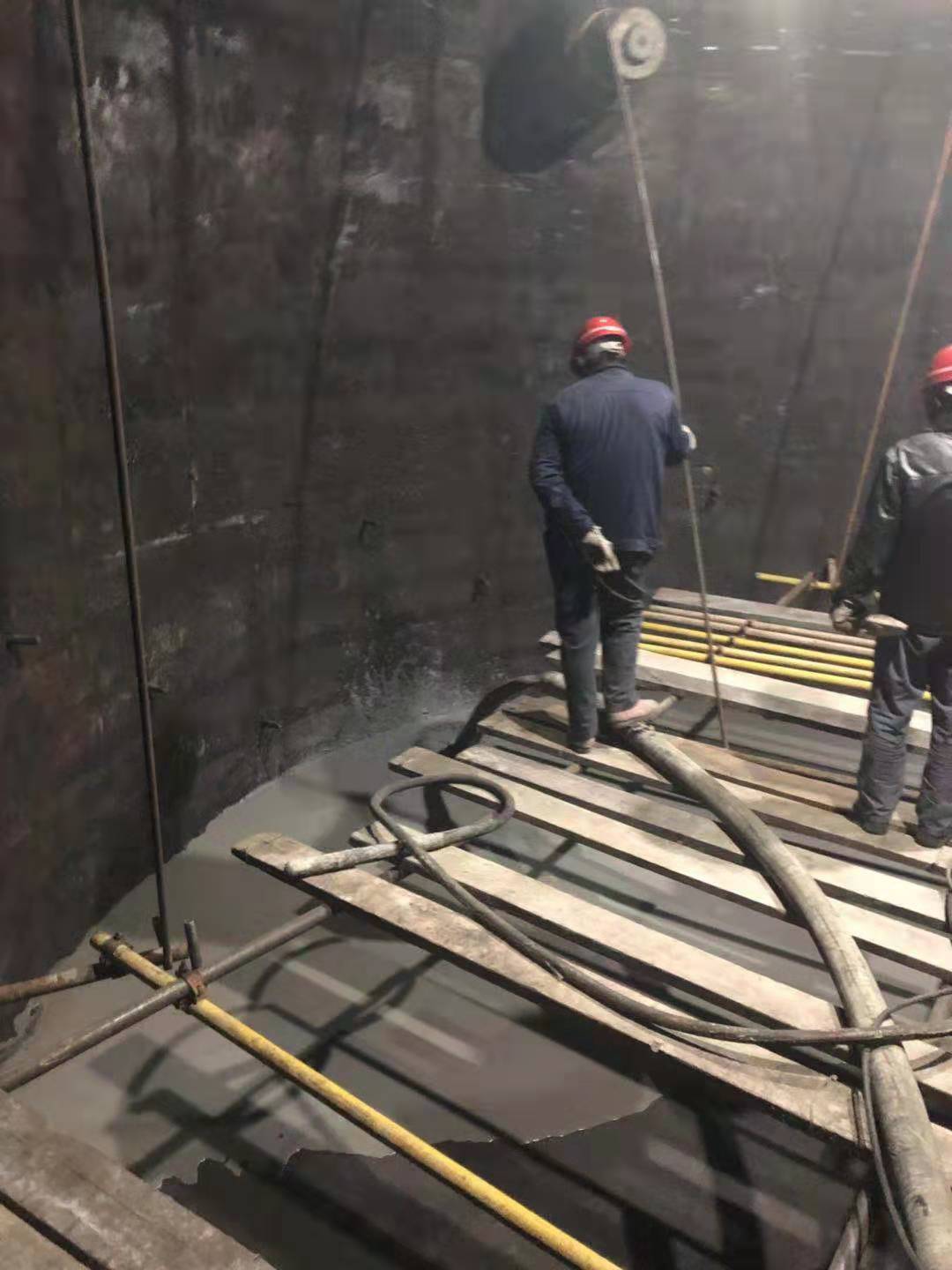 (圖片3 峰峰合信630m3高爐爐缸整體澆注施工開始)